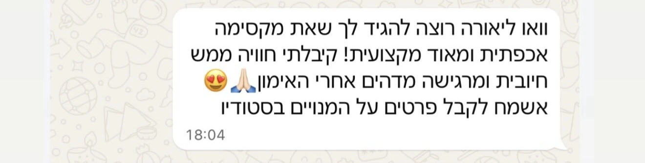 אם ענית כן על הכל – תשאירי לי פרטים ואחזור אלייך בהקדם לשיחת קצרה כדי לבדוק מה מבין האימונים שאני מציעה בסטודיו יתאים לך, וכמובן כדי להכיר!