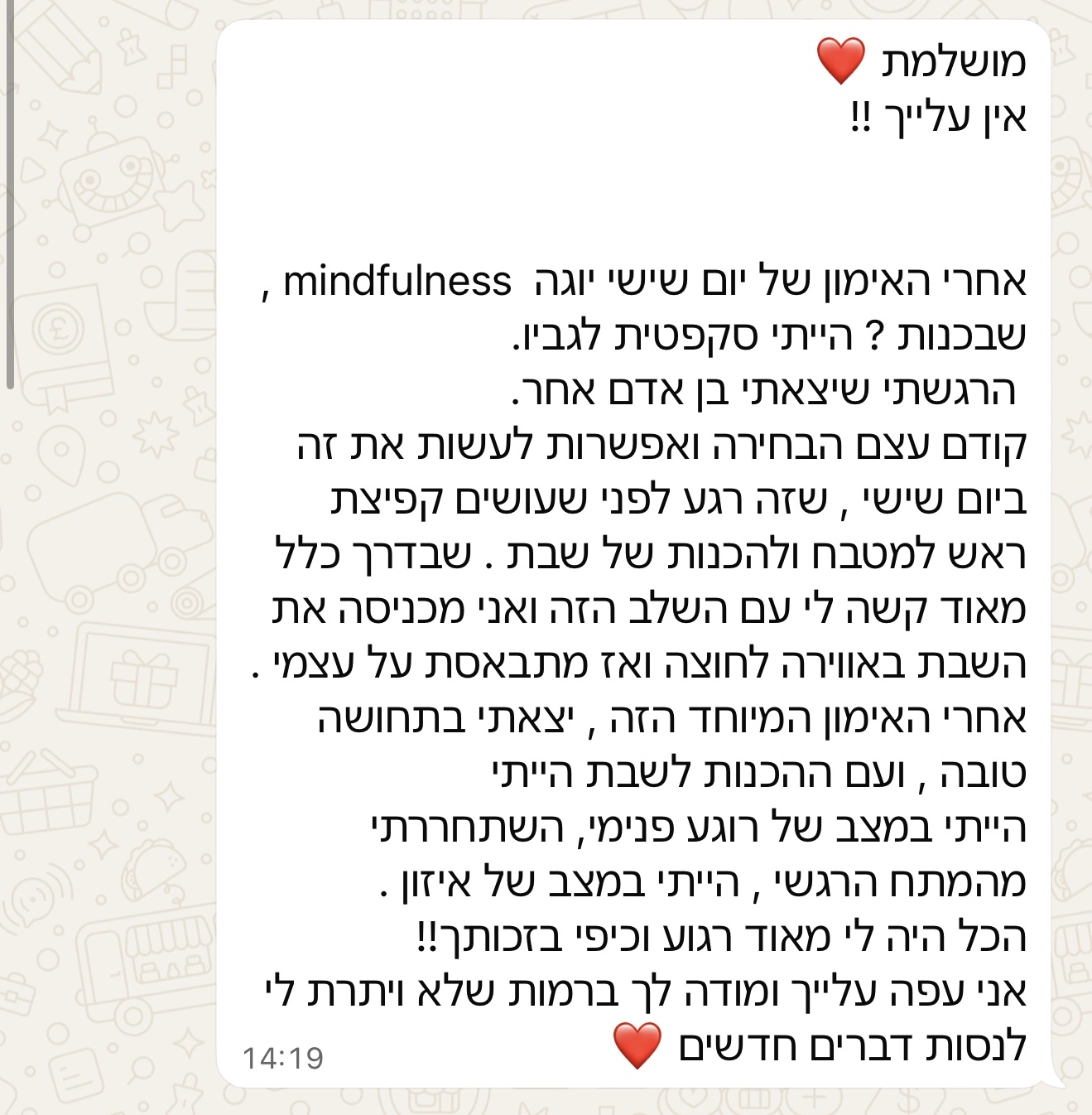 אם את מרגישה חולשה בגוף חוסר גמישות/יציבות לחץ נפשי או פשוט צורך להתחזק ולהירגע